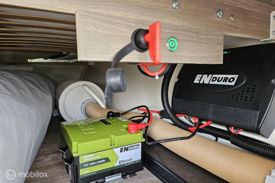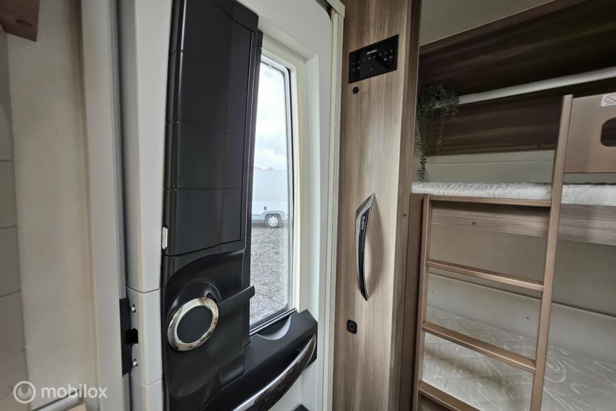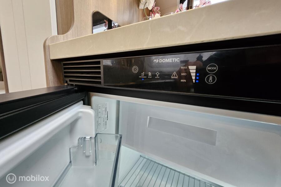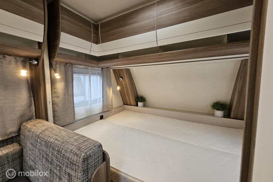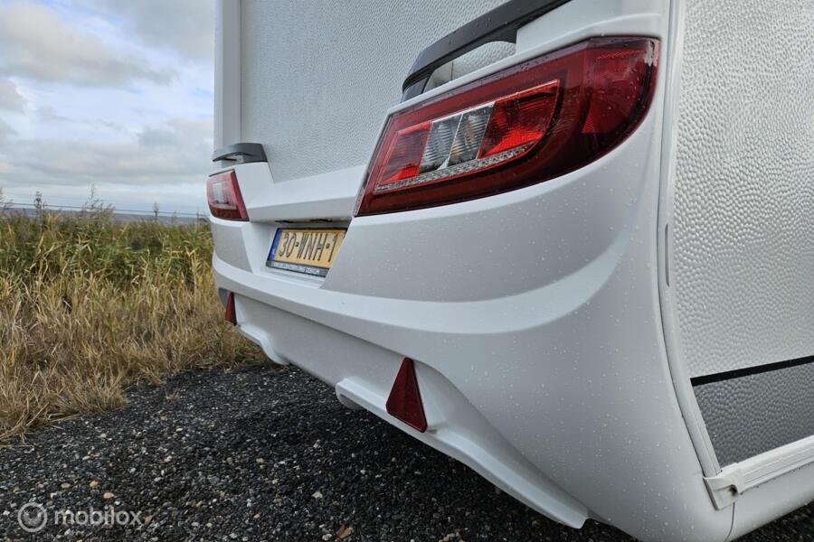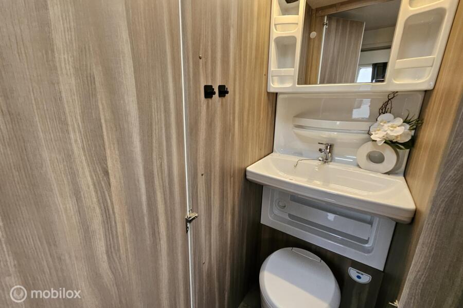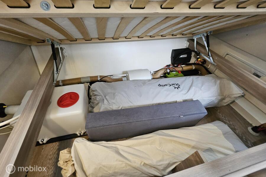 Indeling: - Dwarsbed (130 x 200 cm) - Stapelbed (75 x 200 cm & 70 x 200 cm) - Omgebouwde dinette (88 x 185 cm) - Middenkeuken en midden-zitgroep - Ruime toiletruimte met cassettetoilet
