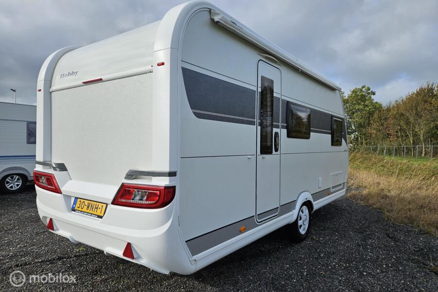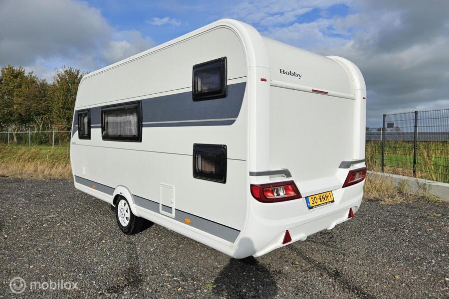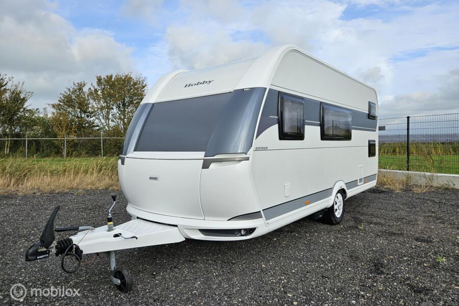 Op zoek naar een jonge, complete gezinscaravan? Deze Hobby On Tour 470 KMF van modeljaar 2024 staat klaar voor vertrek! Geschikt voor 5 slaapplaatsen, met stapelbed, volautomatische mover, Thule zakluifel én een nette StarCamp Tourer 240 voortent.